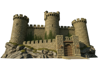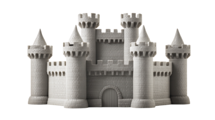 Large detailed stone castle turret with multiple towers medieval design
