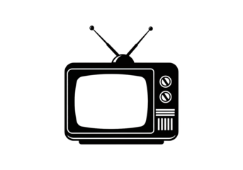 Vintage Television Set With Antenna And Screen In Black Silhouette On White Background