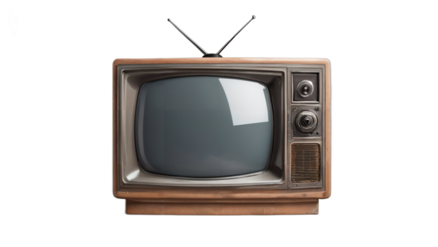 Old silver TV isolated on white background. Retro technology concept. Blank screen for text.Vintage TVs 1980s 1990s 2000s.
