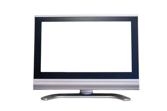 A modern flat screen television with a blank white screen, isolated on transparent background