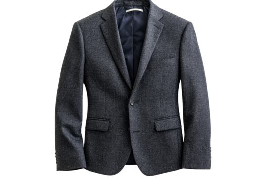 Stylish tweed blazers on wooden hangers, men's classic autumn winter wool jackets, fashion apparel on transparent background