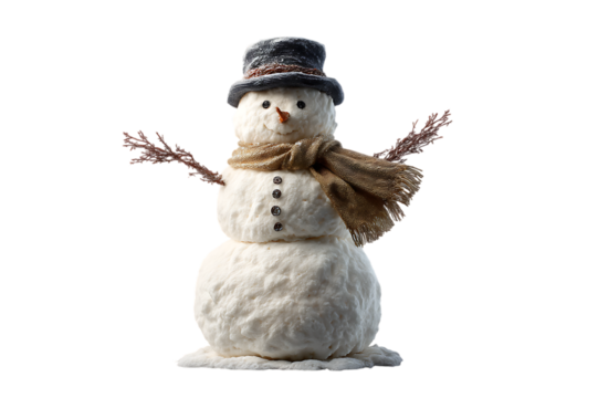 A Charming, Handcrafted Snowman Figurine, Perfect for Festive Winter Decor Isolated on transparent background, cutout