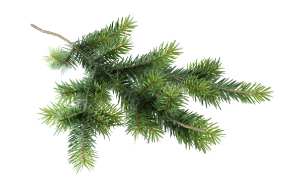 Spruce branch, Realistic Christmas tree, isolated on transparent background.
