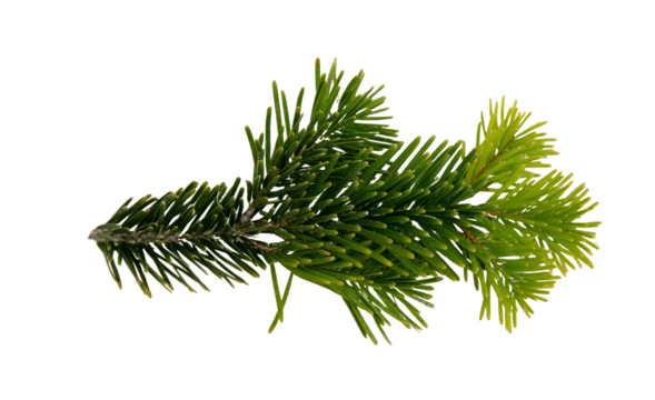 Christmas pine tree twig isolated on white transparent. Xmas green fir spruce branch closeup
