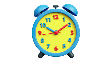 Retro Blue Twin Bell Alarm Clock with Sad Face Displaying 10 OClock Isolated on Transparent Background