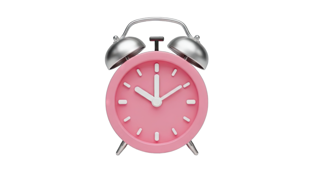 3D Pink Alarm Clock on transparent background