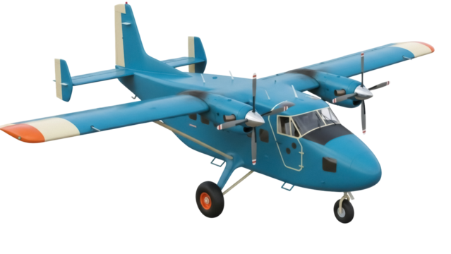 Blue twin engine airplane PNG isolated on transparent background, vintage aircraft model for aviation and transportation design projects
