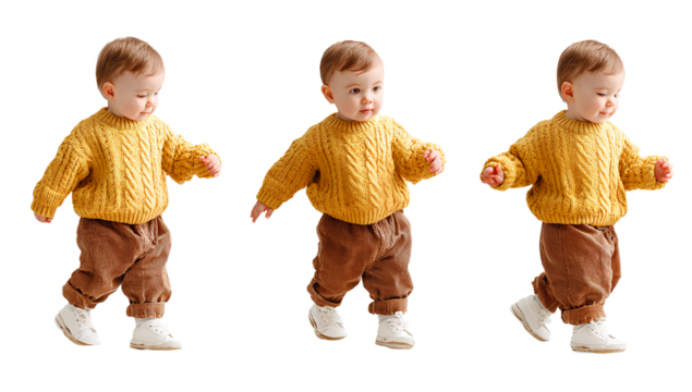 Diverse group of children running on transparent background