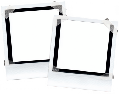 Two old blank instant photos taped to a transparent background, creating a vintage and nostalgic mood, perfect for showcasing memories or designs