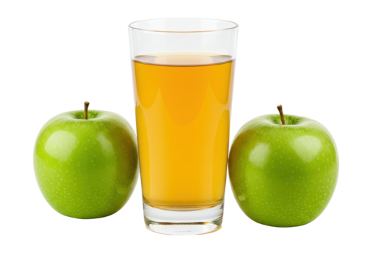 Isolated image of two green apples and a glass of fresh juice, a refreshing healthy drink