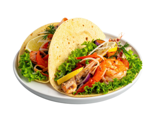 Delicious two tacos isolated on Transparent Background for food photography