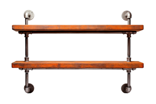 Wooden Shelf With Two Metal Wheels. On a White or Clear Surface PNG Transparent Background..
