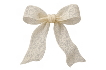 Delicate white lace ribbon forming a beautiful bow. Perfect for adding elegance to gifts, weddings, and special events. Transparent background