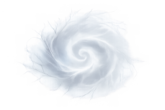 Hurricane storm spiral effect with swirling clouds creating a vortex, depicting severe weather and danger, transparent background