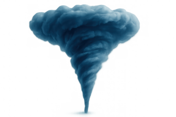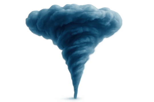 Tornado forming funnel cloud on transparent background, symbolizing extreme weather, crisis, destruction, or powerful force