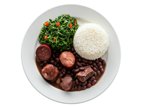 Hand holding smartphone with typical Brazilian meal known as Prato Feito on screen