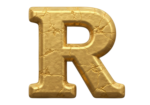 Isolated Golden Letter A, decorative typographic symbol, shiny 3D rendering for decoration needs