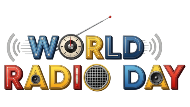 Colorful world radio day typography design with vintage elements on transparent background