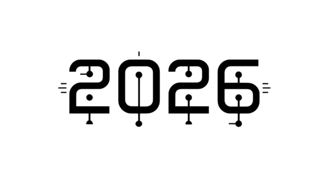 Minimalist thin line 2026 typography with sleek futuristic design on transparent background