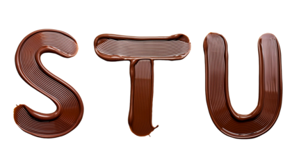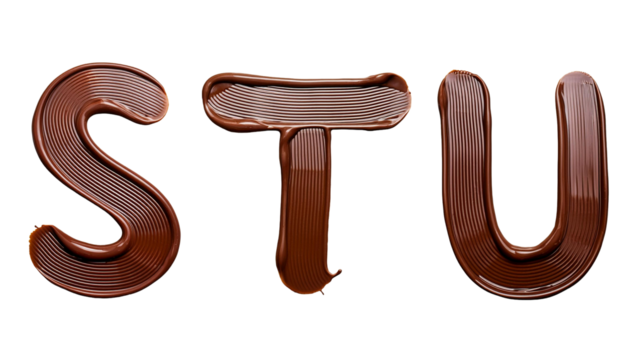 S T U letter with chocolate texture on white