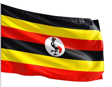 flag of  uganda on a transparent background, waving in the wind, national symbol of uganda, african country, tall flagpole, no background, transparent png