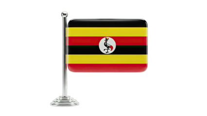 Uganda Flag on Stand Isolated on White Background