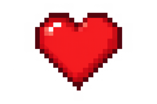 Red pixel art heart symbol representing love, romance, health, and classic video game design for ui elements