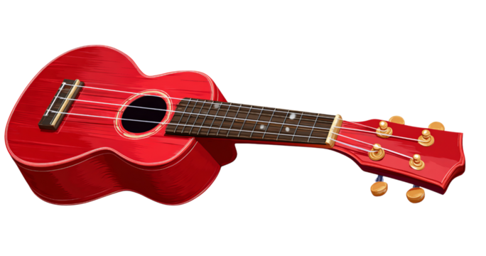 Vibrant red ukulele with intricate detailing displaying musical charm and artistic craftsmanship isolated on transparent background