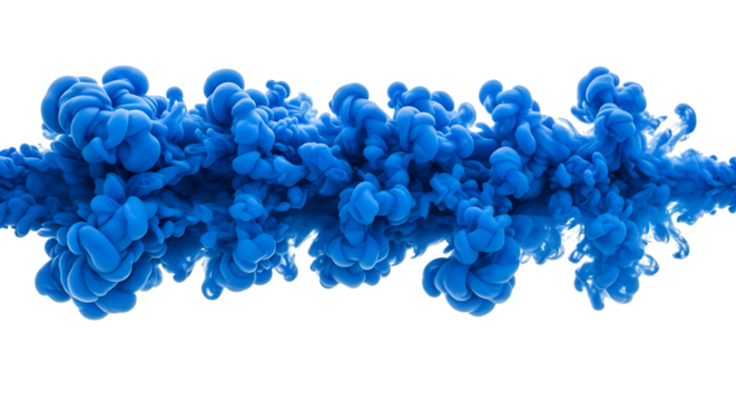 Vibrant blue ink cloud swirling and expanding in water isolated on a transparent background abstract