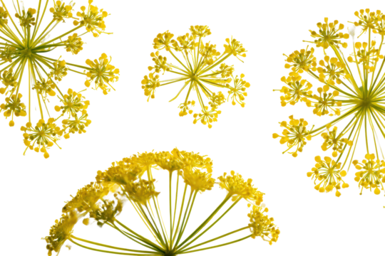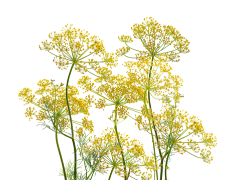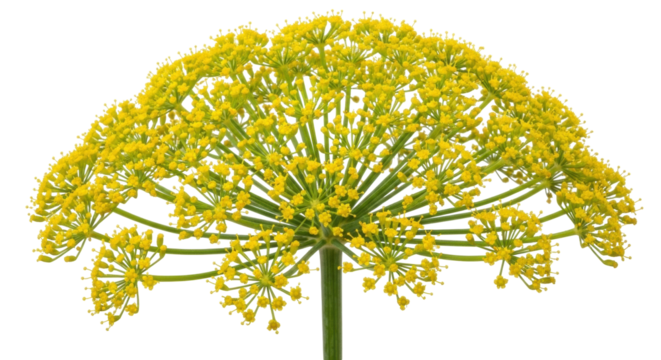 Close-up of Yellow Dill Flower Umbel on PNG Transparent background plant herb