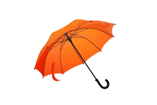 Citrus Canopy: Vibrant Orange Umbrella With Black Handle on White Background. On White or PNG Transparent Background.