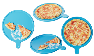 Global Cuisine Concept: Cheese Pizza on United Nations-Inspired Serving Tray