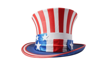 Patriotic Uncle Sam hat isolated PNG on transparent background, American flag top hat with stars and stripes for Independence Day celebration
