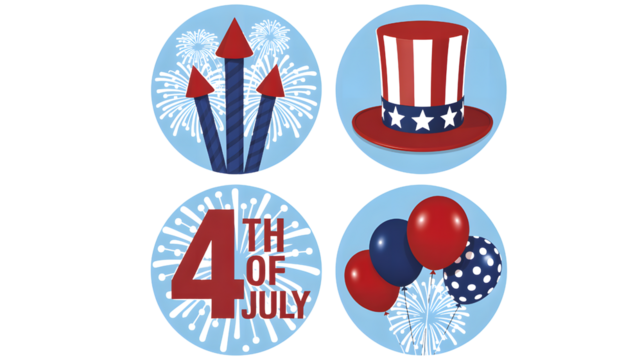 Uncle Sam hat with flag, July 4th festive symbol, stars stripes patriotic, USA independence celebration, isolated on transparent background.