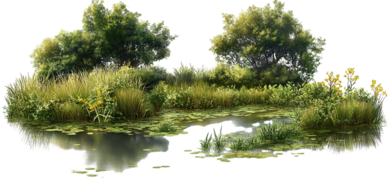 Visit wetlands, grassy marshes, and waterbodies on a transparent background