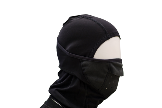 Ski hat and mask on a mannequin, isolated on white background. Dummy in thermal underwear under winter clothes