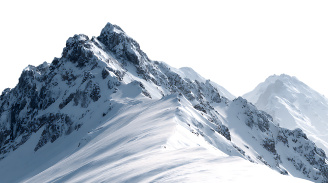 Snowcovered mountain ridge leading to distant peaks under soft sunlight isolated on transparent background