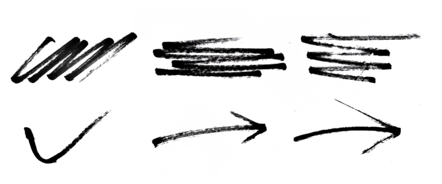 collection of black marker scratch isolated on transparent background