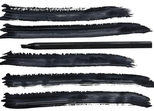 Black paint stroke brush swatch creating an artistic texture element on transparent background for design