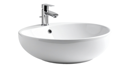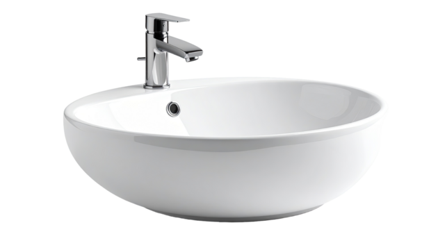 Modern white ceramic bathroom sink with chrome faucet for clean design new home water decor style shiny metal on transparent background