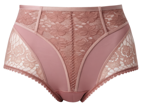High waist panties with floral lace details in mauve color for feminine intimate apparel product photography
