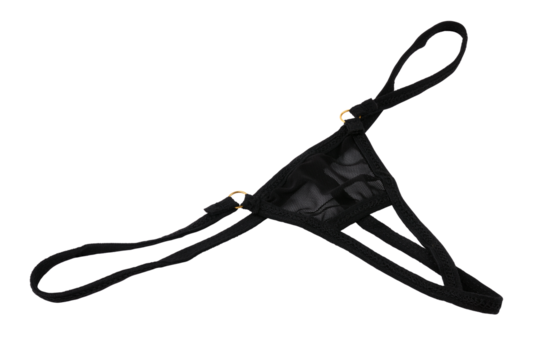 Black lace panties featuring delicate bow detail, showcasing elegant lingerie design against transparent backdrop