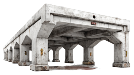 Underneath the City: A weathered concrete overpass stands as a testament to urban infrastructure, its arches forming an intricate network of support. Its raw.