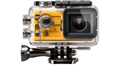 Underwater camera waterproof digital camera action camera orange camera photography equipment for adventure shots on transparent background