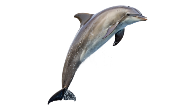 Dolphin jumps leaps above the water's surface isolated on transparent background cut out