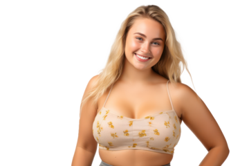 body positivity, confident, curvy and happy woman in crop top
