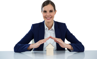 insurer protecting a house by his hands