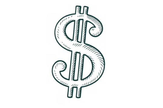 Dollar sign sketch drawing symbolizing money, finance, currency, wealth, investment, banking, and global economy on transparent background