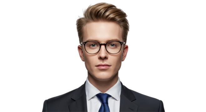Isolated Portrait of Young Businessman with Glasses in Suit