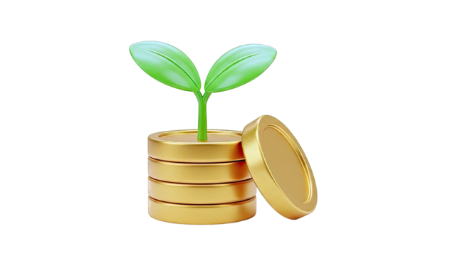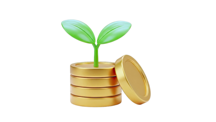 Sprouting Plant on Stack of Gold Coins
